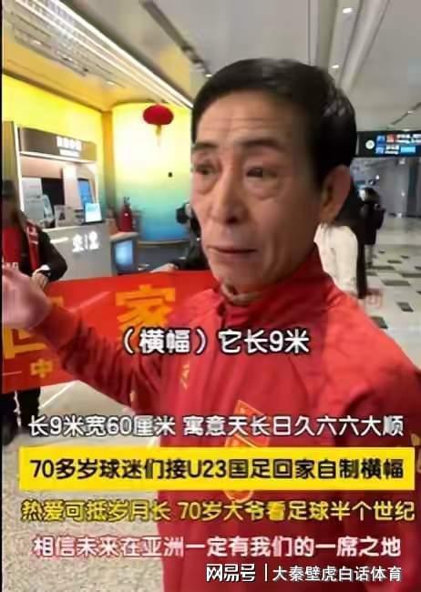 其中一名70多岁的老大爷球迷还带着巨型横幅前往,非常吸睛。