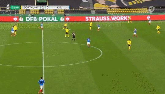 16'多特左路进攻,雷纳接到桑乔传球内切,在对方包夹前破门得分,1比0!
